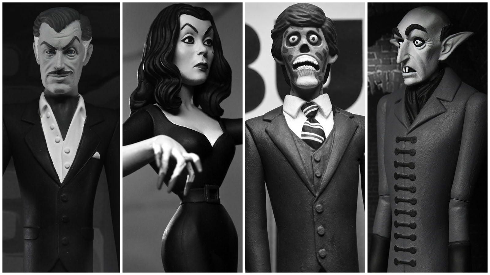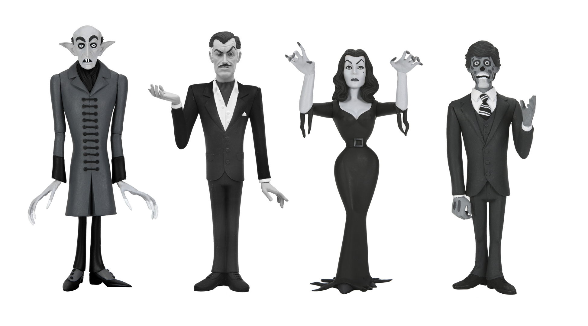 Count Orlok (Nosferatu) standing approximately 6 inches tall, features a grayscale deco and comes in special black-and-white packaging with cutout backdrop and silver foil logo.