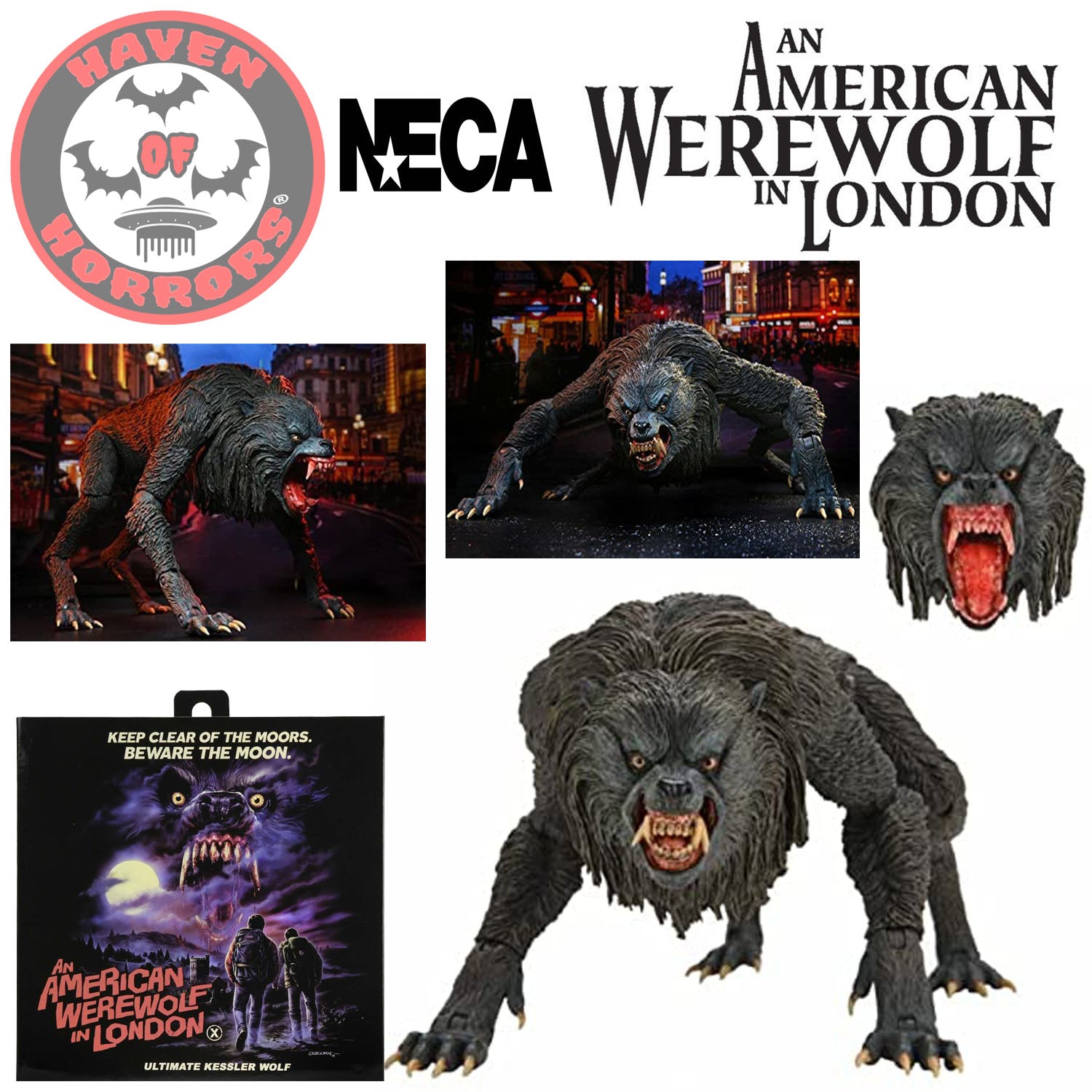 NECA's newest figure from An American Werewolf in London is an action figure first! The classic 1981 movie is the perfect blend of comedy and true horror, and follows two American backpackers and their increasingly terrifying trip across England. Only David Kessler survives the bizarre wolf attack that kills his friend Jack... but then an undead Jack returns to warn David that he will soon transform into a murderous beast.