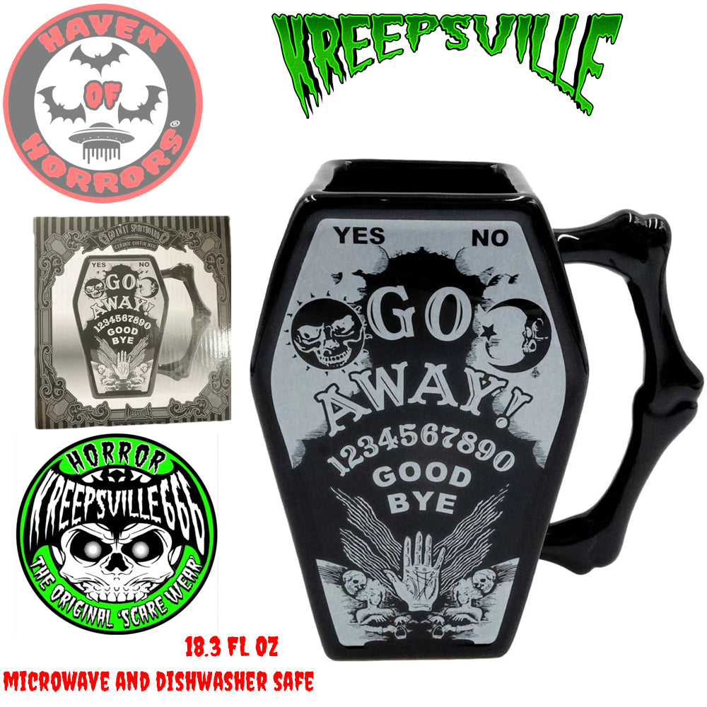 Summon your coffee with Kreepsville's Go Away Coffin Mug!
